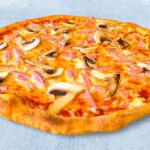 Tomatsaus, ost, kjøttdeig, paprika og løk