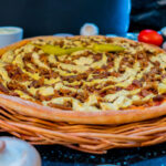Tomatsaus, ost, kebabkjøtt, valgfri salat, pommes frites og saus